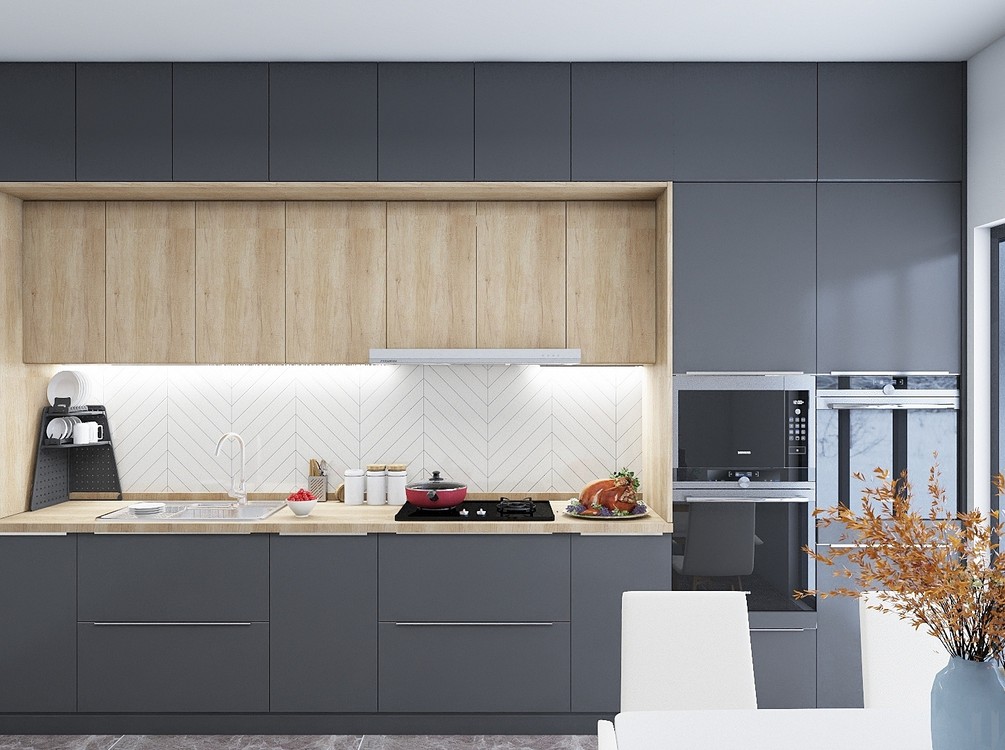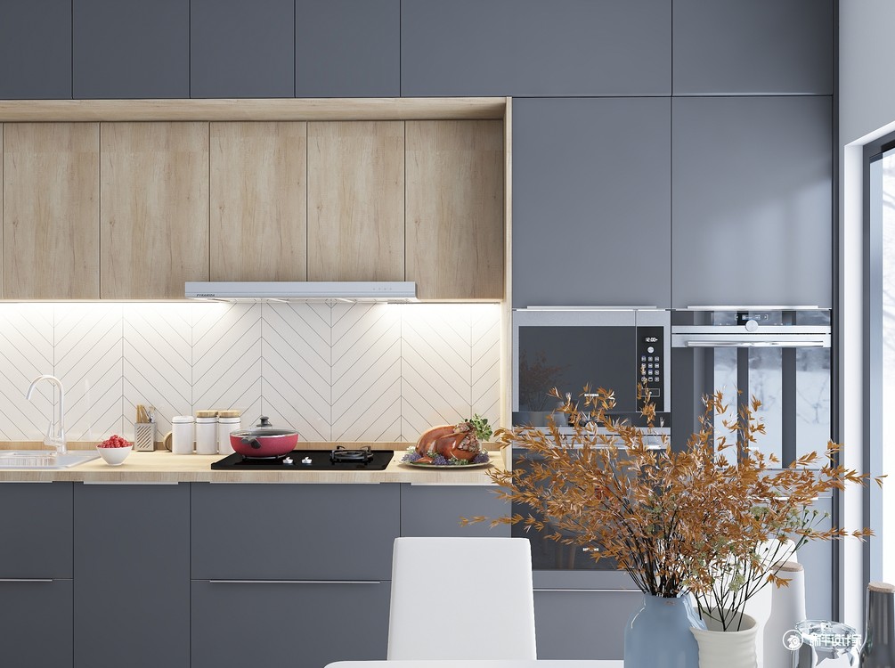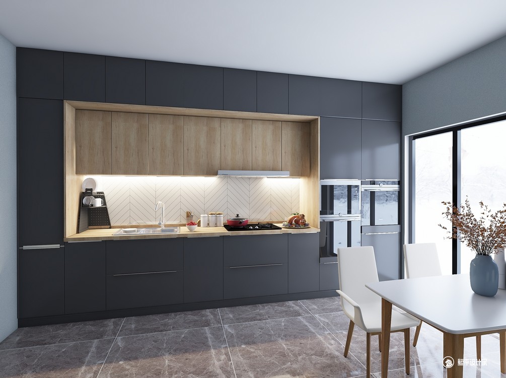 亚光黑+木色厨房